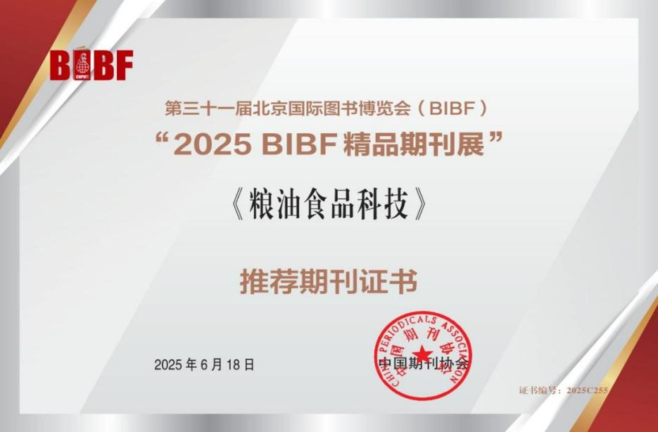 《糧油食品科技》期刊將以此為契機,不斷提升期刊國內外影響力,努力爭辦一流科技期刊,助力糧儲科技創新工作高質量發展。